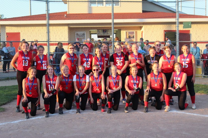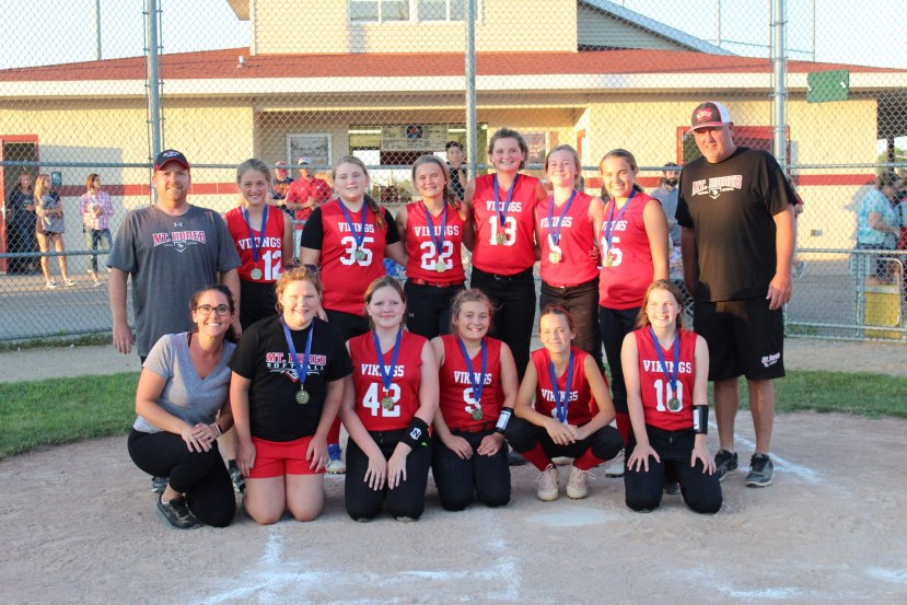 The Mount Horeb U12 Fastpitch Softball team recently completed a perfect season by defeating Milton 17-5 in the South Central League Championship at Firefighter’s Park in Middleton on July 30th. The team finished league play with a 10-0 record before defeating Poynette in the semifinals 15-3 in Mt Horeb. The team was an offensive juggernaut throughout the season regularly scoring 10+ runs. Dominant pitching supported by defense that improved throughout the season kept opponents at bay. The signature stamp of this team was the team first attitude of the players – supporting each other and working together.