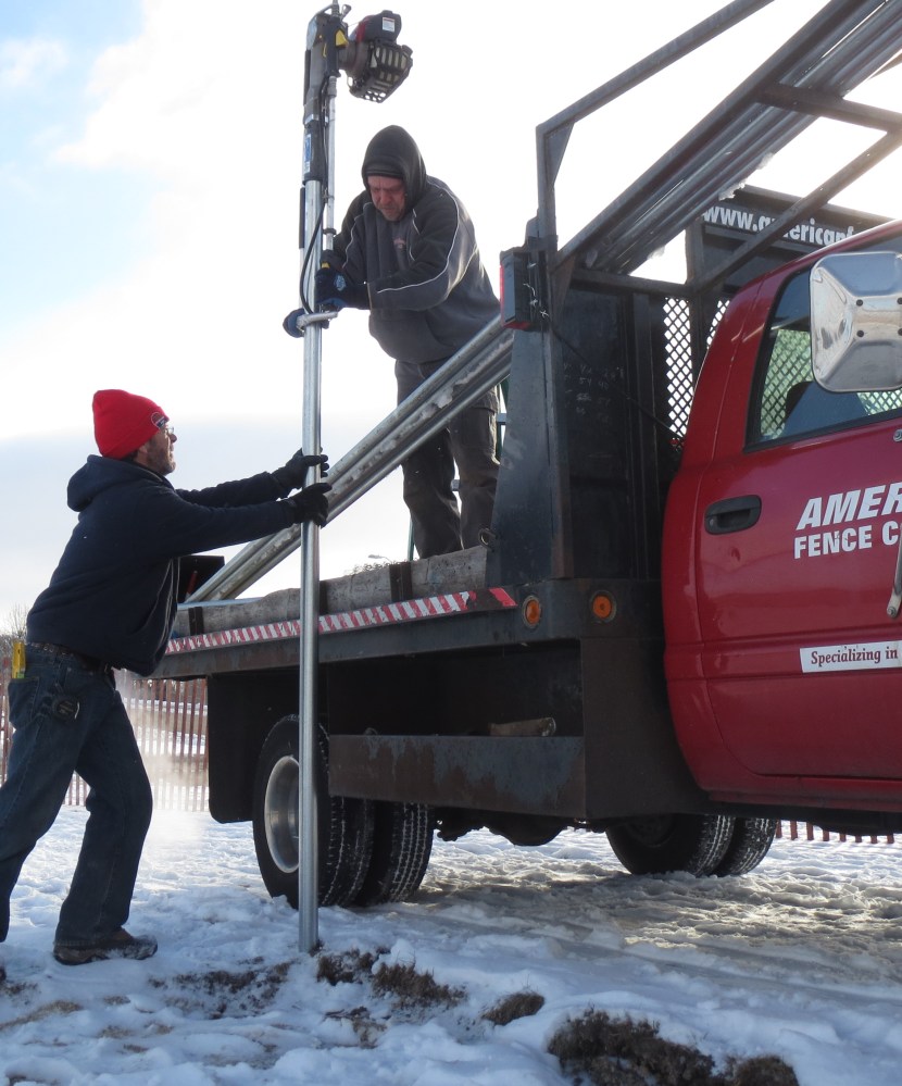 A little cold weather couldn’t slow down improvements at the softball fields in early December. Mike and Bret from American Fence Company braved the cold weather to install backstops for the new pitching lanes at the Varsity Softball Field. In addition, a backstop net extension was installed behind the varsity field home plate to keep more foul balls out of the street next spring. In addition, the netting behind home plate on the junior varsity field was tightened. A special thank you to Jim Ramos, owner of American Fence Company, for the donation of all the fencing materials and the labor to install them. Jim also generously donated the extension posts and hardware at the varsity field backstop.